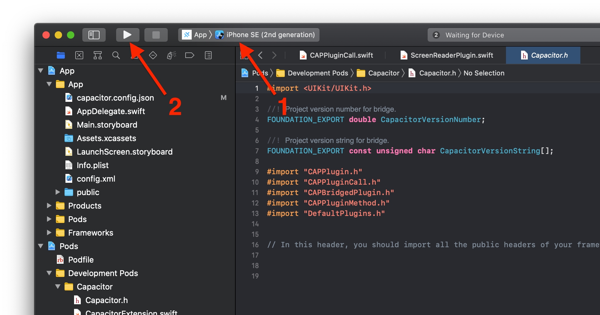 Capacitor features a native iOS runtime that enables developers to communicate between JavaScript and Native Swift or Objective-C code.
